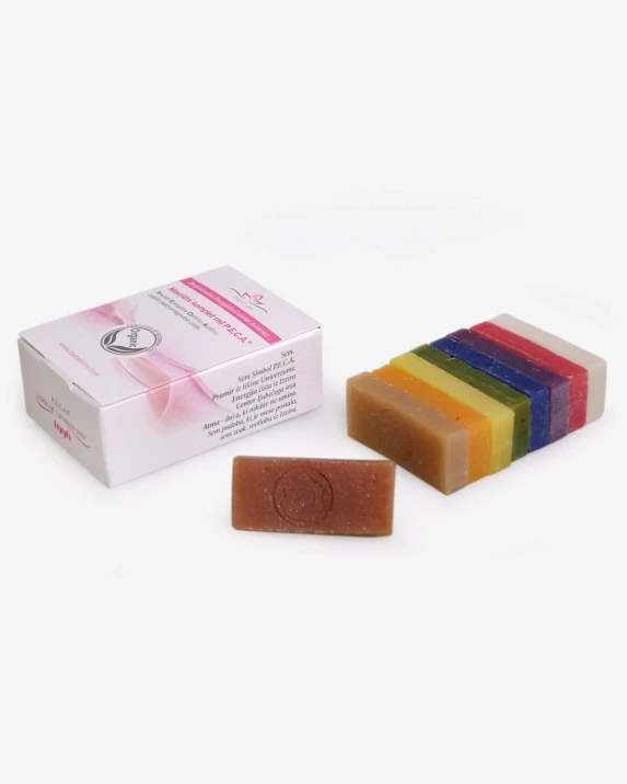 Structure: The soap with an imprinted P.E.C.A. symbol is energetically refined and handmade from vegetable fats (palm, coconut, soy, olive, sunflower, castor bean and grapeseed oil), enriched with natural ingredients. The cold process production preserves the natural glycerine within the soap. This additionally moisturises and nourishes the skin, so that upon using the soap, the skin is softer and more elastic. It is free from all animal and industrial fats.
