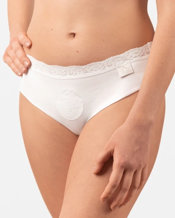 Sestava: energijske spodnje hlačke z vezenim simbolom P.E.C.A. na področju pod popkom so izdelane iz ekološko obdelanega 91% bombaža in 9% elastana, z dodatkom čipke.